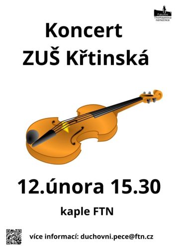 Fakultní Thomayerova nemocnice Vás srdečně zve na koncert dětí ze ZUŠ Křtinská, který se bude konat již 12.2.2026 od 15.30 hod. v kapli sv. Václava. Koncert potrvá přibližně do 16.15 hodin.