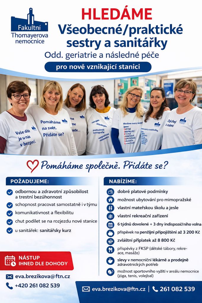KONTAKT: vrchní sestra oddělení, e-mail: eva.brezikova@ftn.cz, tel. č.: 261 082 539