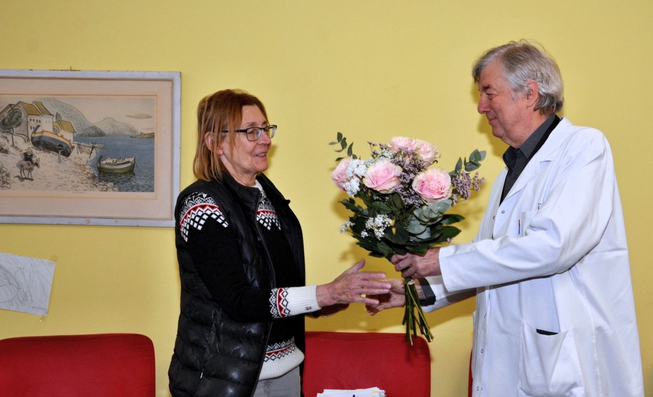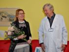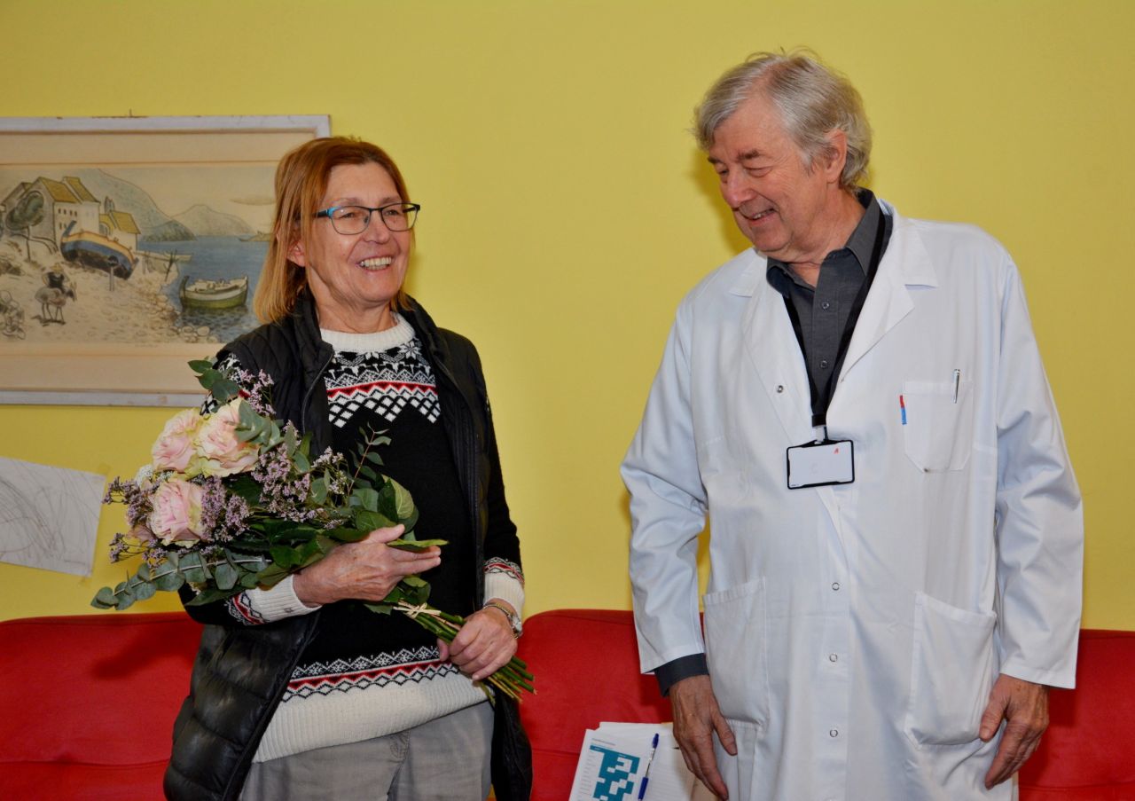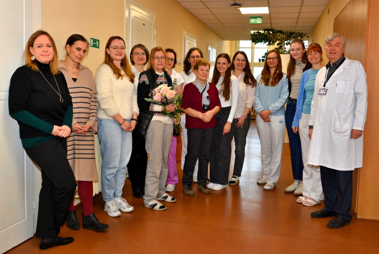 Během setkání paní doktorka převzala z rukou ředitele také kytici a nechyběl ani slavnostní přípitek za přítomnosti ostatních kolegů z Psychologického oddělení. PhDr. Dana Krejčířová působí ve FTN již několik desetiletí. Za své mimořádné celoživotní úsilí a přínos v oblasti dětské klinické psychologie byla oceněna Medailí Za zásluhy I. stupně. Srdečně jí gratulujeme k tomuto významnému ocenění i k uznání její odborné a lidské práce.