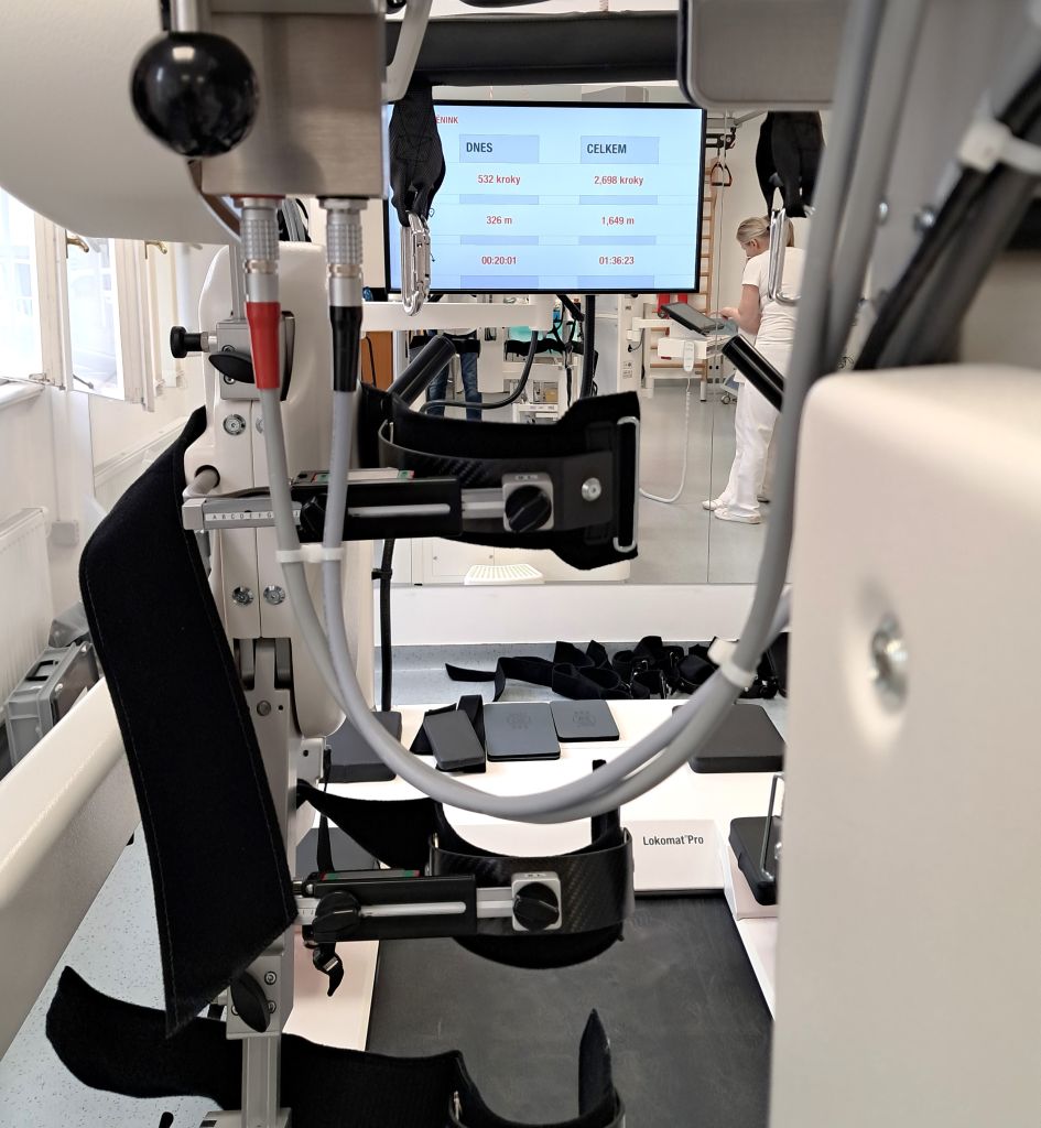 Díky elektricky poháněné ortéze, která se přizpůsobuje individuálním potřebám pacienta, umožňuje intenzivní a efektivní rehabilitaci přímo na běžícím pásu. Systém zároveň poskytuje podporu tělesné hmotnosti a neustálou zpětnou vazbu, čímž maximalizuje efekt terapie. Zařízení bylo pořízeno díky EU dotacím v rámci Národního plánu obnovy (NPO) a z části i z rozpočtu FTN. Přístroj je nově umístění na Klinice revmatologie a rehabilitace 3. LF UK pod vedením přednosty MUDr. Toma Philippa, Ph.D., MBA, který poskytl rozhovor o Lokomatu v reportáži TV NOVA.