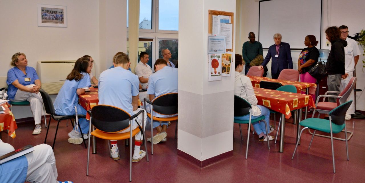 V rámci programu jsme ve FTN přivítali nové stážisty z Pobřeží slonoviny, kteří budou pasivně působit na Gynekologicko-porodnickém oddělení po dobu 14 dnů a budou zde získávat potřebné znalosti, informace a zkušenosti. Jedná se o gynekologa a porodní asistentku. Ve FTN je přivítal ředitel nemocnice doc. MUDr. Zdeněk Beneš, CSc., který jim popřál úspěšnou stáž a zároveň aby získali co nejvíce nových znalostí. Za sebou už mají prohlídku místního multioborového robotického sálu a měli již možnost vidět práci našich gynekologů na porodnickém sále. Postupně prochází celým oddělením a seznamují se s každodenní praxí našich zdravotníků v rámci oddělení.