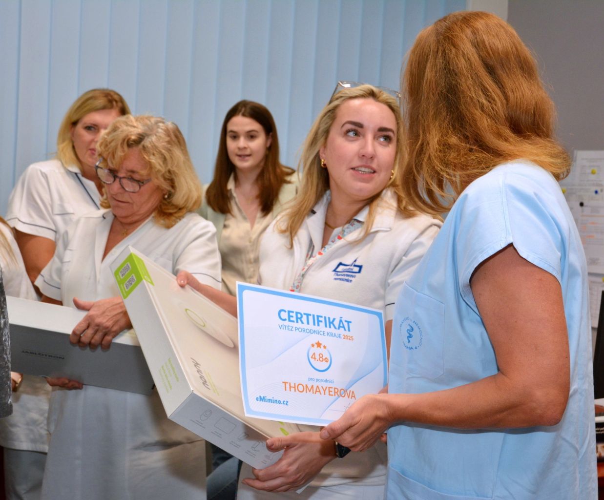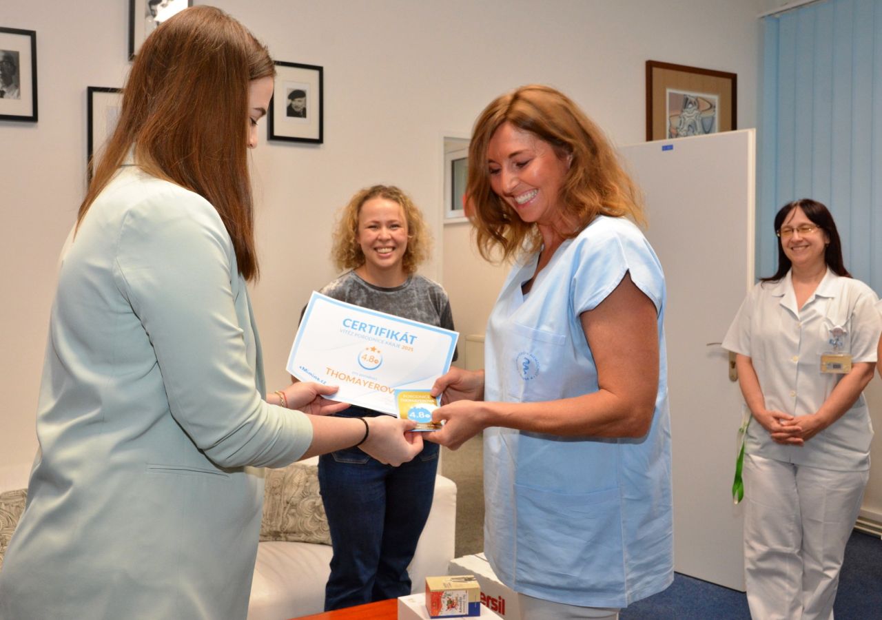 Za úspěch v anketě Porodnice roku 2025 v Praze, kterou pořádá nejnavštěvovanější rodičovský portál eMimino.cz, jsme nyní oficiálně převzali certifikát a věcný dar v podobě monitorů dechu, které pomohou ještě více zvýšit bezpečí o narozená miminka. Úspěch v anketě je pro nás velkou poctou a zároveň závazkem pokračovat v péči na nejvyšší úrovni.