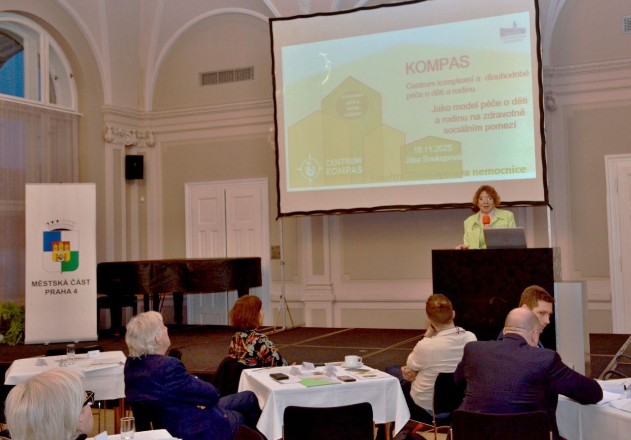 Se svou prezentací o Centru KOMPAS vystoupila RNDr. Jitka Soukupová, Ph.D., která je pověřena vedením zařízení a zároveň je náměstkyní pro vědu, výzkum, výuku a mezinárodní záležitosti. Představila jeho hlavní priority, průběh transformace centra a jeho činnosti, budoucí plány a další směřování. Na tradici někdejšího Kojeneckého ústavu v Sulické ulici navazuje KOMPAS službami, které spojují medicínu, rehabilitaci, psychologii i sociální podporu. Z ústavu se nově stalo otevřené centrum pro rodiny, které řeší současné potřeby dlouhodobě nemocných dětí i jejich blízkých. Od 1. ledna 2025 nabízí KOMPAS propojení zdravotní péče a sociální služby pod jednou střechou na jednom místě.