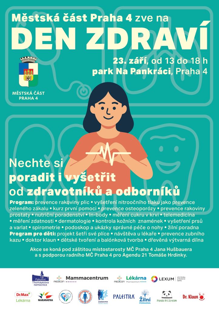 Fakultní Thomayerova nemocnice (FTN) Vás zve na další ročník – DNE ZDRAVÍ, který se koná již 23.9. od 13.00 do 18.00 hod. v parku Na Pankráci. Akci pořádá MČ Praha 4 ve spolupráci s FTN.