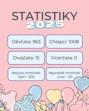 V roce 2025 se v naší porodnici v Krči narodilo více chlapců než děvčat, a to v poměru 1008 ku 963. Nejvíce miminek se u nás narodilo v říjnu (202) a nejméně v únoru (121). Dvojčat bylo tentokrát 15 a porodů celkem - 1966.