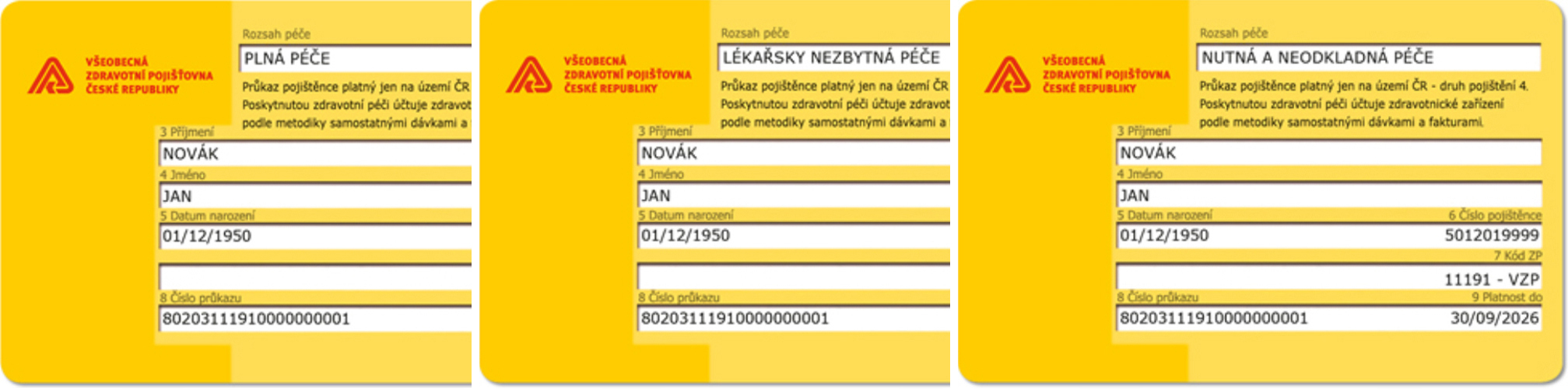 - Po předložení těchto dokladů má pacient nárok na poskytnutí zdravotní péče v rozsahu uvedeném na registraci české veřejné zdravotní pojišťovny