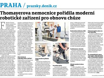 V českém zdravotnictví se stále častěji prosazují roboti. Lékaři je používají při operacích nebo rehabilitacích po úrazech. Třeba v Hořovicích teď nově používají roboty při speciálních ortopedických operacích. V pražské Thomayerově nemocnici zase k rychlejšímu zotavování pacientů. Jedná se o jedineční rehabilitační přístroj – LOKOMAT, který pomáhá pacientům k obnově chůze po různých těžkých úrazech, zraněních či po mozkové příhodě atp.