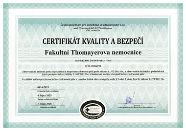 Zavedení a udržování systému řízení kvality je strategickým rozhodnutím Fakultní Thomayerovy nemocnice, která má trvalý zájem zvyšovat kvalitu a bezpečnost péče.