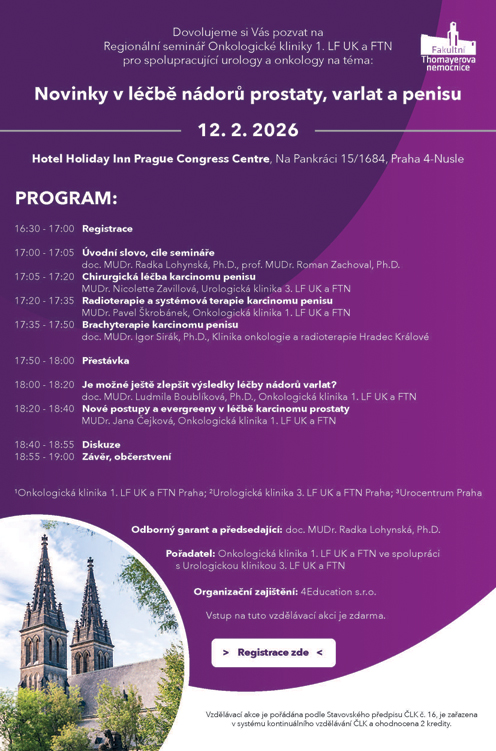 Pravidelně pořádáme odborné semináře pro spolupracující specialisty z regionu (např. pro urology), kde sdílíme novinky v onkologické péči, kazuistiky a aktuální doporučení.